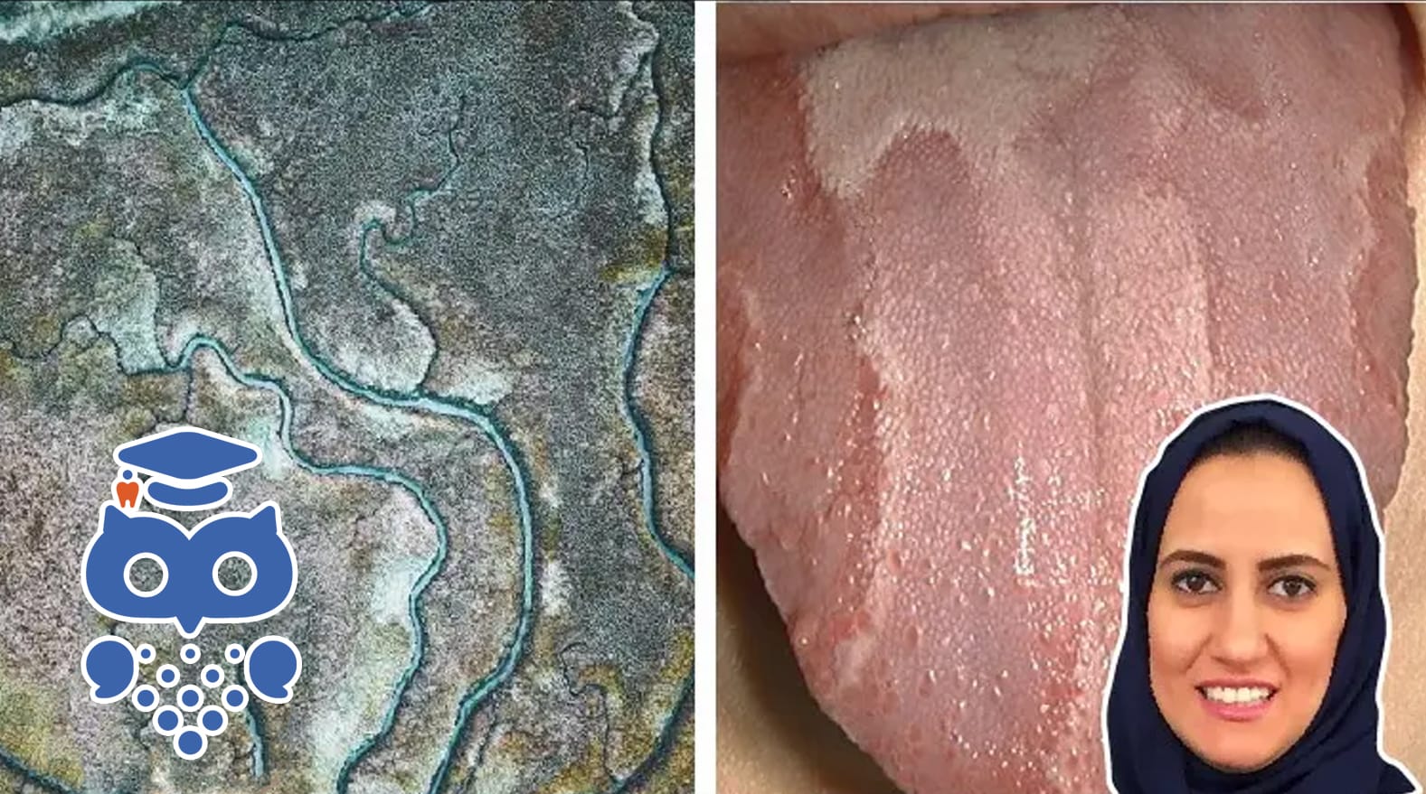 Lingua geografica liknar histologiskt psoriasis med inflammatoriska infiltrat av PMNL (polymorfkärniga leukocyter), så kallade Munro’s abscesser. Patienter med lingua geografica uppvisar dock ingen ökad förekomst av psoriasis.